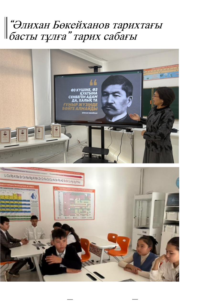 Тарих сабағы кіріспе сөзбен басталып, кітапханашы Әлихан Бөкейхановтың қазақ халқы үшін атқарған қызметіне, Алаш қозғалысындағы жетекші рөліне, ұлттық тәуелсіздік жолындағы күресіне кеңінен тоқталды. Сабақ барысында тарихи деректер, көрнекі материалдар мен тақырыптық кітап көрмесі ұсынылды. Оқырмандар белсенді түрде сұрақтар қойып, пікір білдіріп, тарихи тұлғаның ел болашағы үшін жасаған еңбегін талқылады. Пікір алмасу арқылы қатысушылар өз ойларын еркін жеткізіп, тұлғаның тарихи маңызын тереңірек түсінді. Іс-шара оқырмандардың ел тарихына деген қызығушылығын арттырып, азаматтық жауапкершілік пен ұлттық сананы қалыптастыруға ықпал етті.