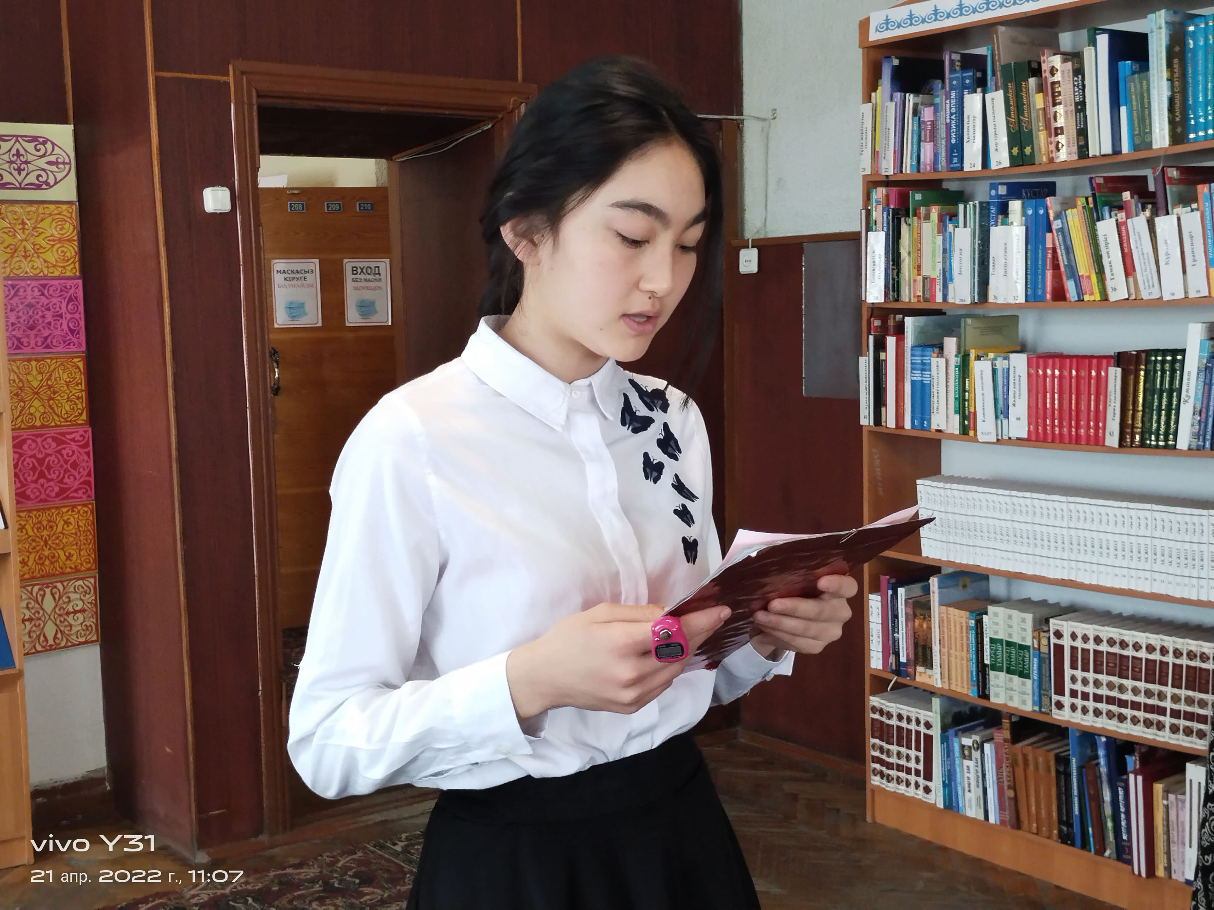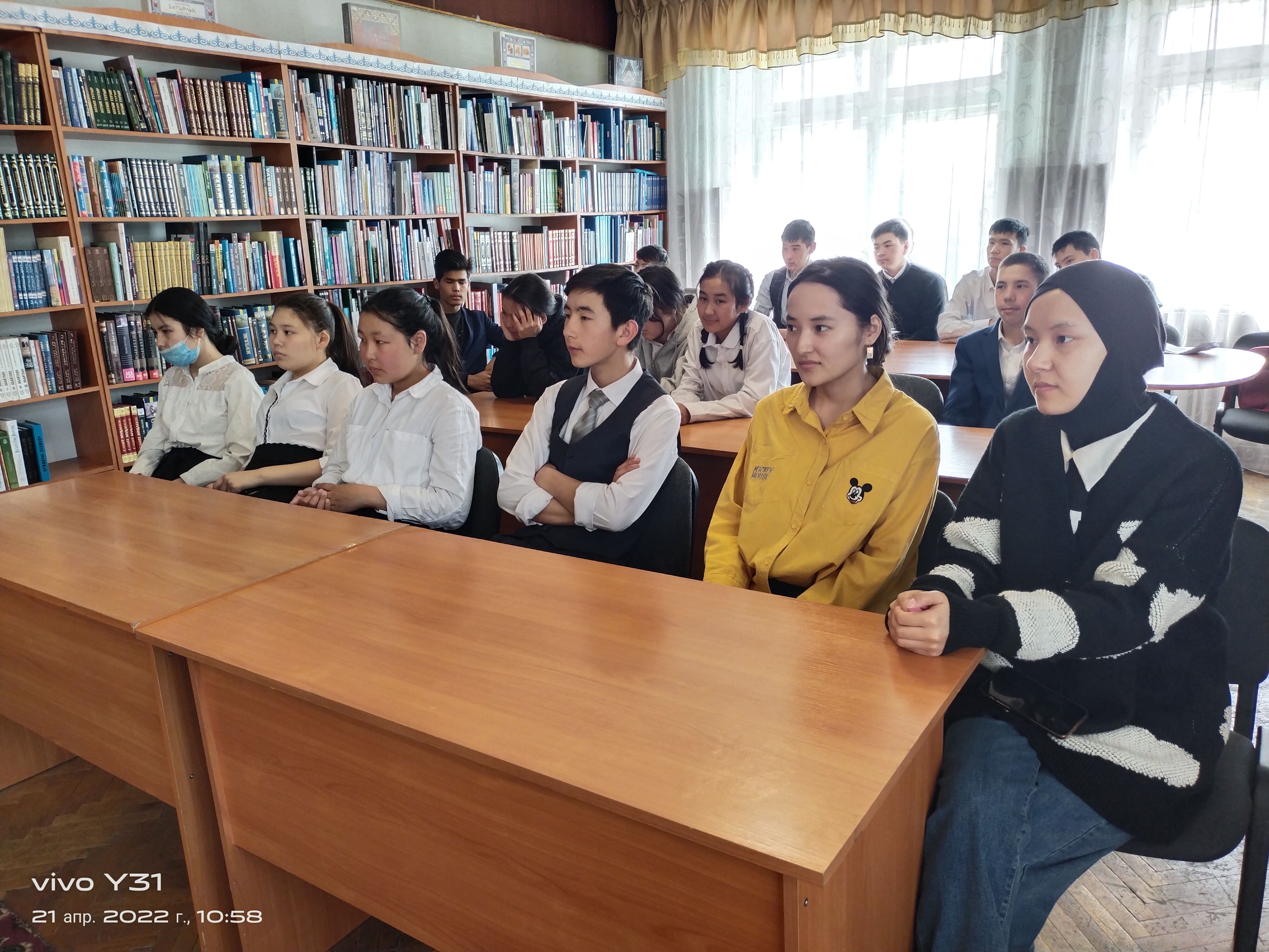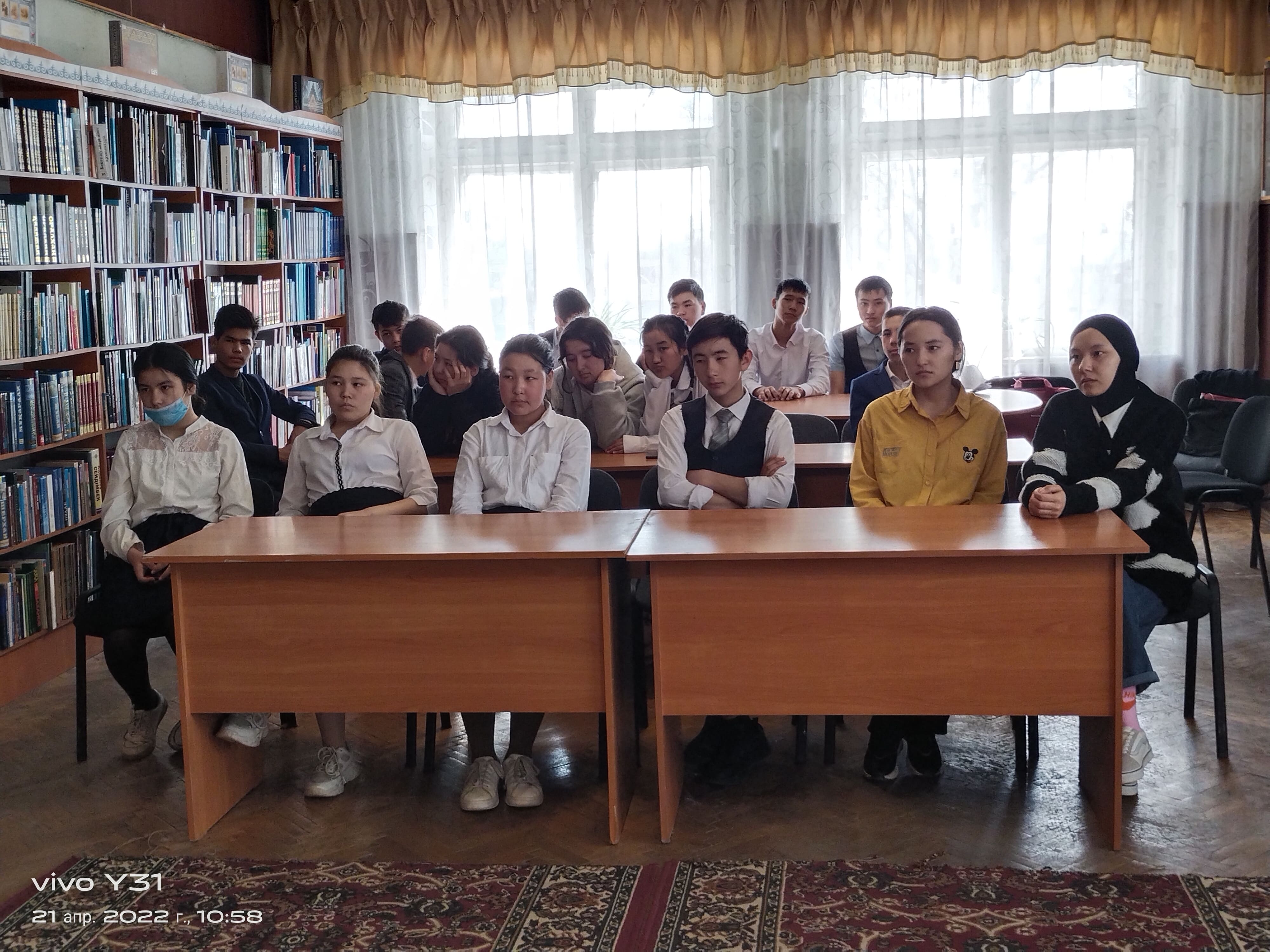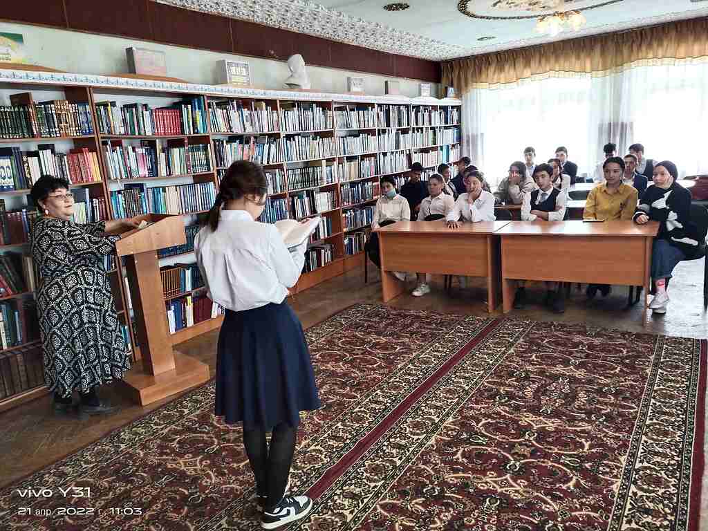 Аталған шара барысында Ахмет Байтұрсынұылының өмірбаяны, отбасы мен өзінің қыйын қыстауда өткен тағдыры туралы баяндалып, шығармашылығы, кітаптары, ғылыми еңбектері туралы мағлұмат берілді. Алаш арысының өмірін оқушыларға үлгі ете отырып, өз елін сүюге, оның көркеюіне үлес қосуға тәрбиелеу, оқушылардың танымдық деңгейін дамыту мақсатында - сауалнама жүргізіліп, ақынның өлеңдері оқылды және кітапханадағы жасақталған көрмелермен таныстыру жұмыстары жүргізілді.