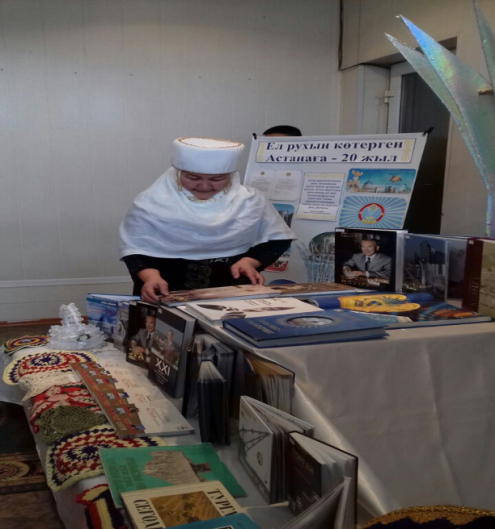 «Асқақ әнім, Астана!» атты ХХХІІ облыстық халық шығармашылығы көркемөнерпаздарының фестиваліне «Ел рухын көтерген Астанаға – 20 жыл» жылжымалы тақырыптық көрмесі арқылы Астананың қаласының кешегісі мен бүгінгісі жайында жазылған әдебиеттер жинақталып қатысқан 245 қырманға көрмедегі әдебиеттерге шолу жасалды.