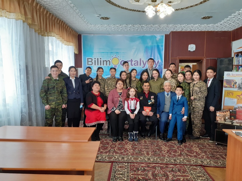 «Ерлік – жан дүниенің ұлы қасиеті» деген екен бір дана қария. Өмірінің өлшеулі бір бөлігі, жауқазын жастывқ шағының сүбелі үлесін бораған оқ пенлаулаған оттың арасында өткізіп, тағдырдың жазуымен елге аман – сау оралып, туған жерімен қауышқан Серік Сейілханұлындай майдангер ағаларымызбен кездесіп, бүгінгідей сұхбат жүргізу – біз үшін бір ғанибет. Кешіміздің қонағы Родина ауылының тұрғыны жеке кәсіпкер Исмурзин Серік Сейілханұлы 1963 жылы 21 майда Ульяновск қаласында дүниеге келген. 1980 жылы Досафта 3 ай тракторист курсын оқыған. 1981 жылы Қостанай облысынан Ауғанстанға аттанған. Баграм,Кабул қалаларында алты рет соғыс операцияларына қатысқан.Интернационалистік борышын адал өтегені үшін медаль ордендермен марапатталған. Родина мектебінің 10 сынып оқушылары Ауғанстан соғысы туралы өздерін қызықтырған сұрақтарын қойып. Серік Сейілханұлы әскердегі үзенгілес достарының ерліктері туралы әңгімелеп, өз естеліктерімен бөлісті.Кештің соңында оқырмандар өз Отанына шексіз берілген, патриоттық рухы жоғары, қайсар жауынгер ағаларымен естелікке суретке түсті.