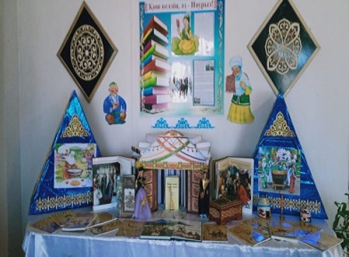 Мерекеге арналып жасалған кітап көрмесі Наурыз тойының табиғатын, шығу төркінін, мазмұны мен мәнін, халықтың мәдени-рухани өміріндегі орнын баяндап, қазақ халқының салт-дәстүрі, әдет-ғұрпы мен қолөнері, ұлттық тағамы туралы насихаттады. Көрмедегі Наурызнама, «Қазақ халқының тұрмысы мен мәдениеті», «Атадан өсиет, анадан қасиет», «Қазақ халқының салт-дәстүрлері», «Ас атасы нан», «Қазақ эпостары», «Ұлттық ойын тамашалары», «Қазақтың ұлттық тағамдары», «Қазақтың киіз үйі», «Жеті қазына», «Ағаш бесіктен, жер бесікке дейін» кітаптарымен бірге сәндік-қолтанбалы өнер түрлері-зергерлік бұйымдар, қоржындар, тұрмыс заттары, кәдесыйлар, қазақ шеберлерінің төсек жабдықтары киіз бұйымдары көрсетілген. Наурыз мейрамының шығу тарихынан сыр шертетін кітаптар мен ұсыныс құралдары қойылды. «Ұлыстың ұлы күні», «Наурыз көже», «Әз наурыздың қадірі мен қасиеті» т.б кітаптармен мерзімді басылымдар бетіндегі мол мағлұматтар өз халқының мәдениеті мен этнографиясын танып білгісі келетін әркімге пайдасы мол болмақ. Көрмеге 17 кітап қойылды. Көрме айдың аяғына дейін созылмақ.