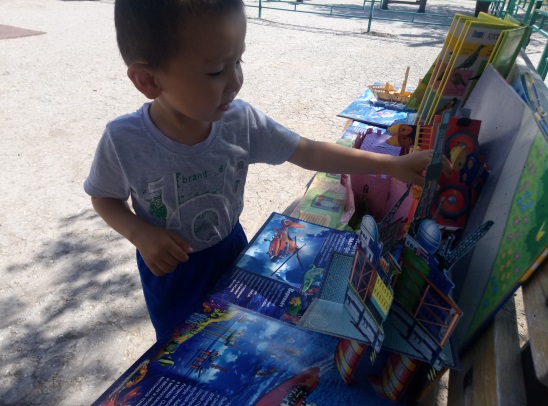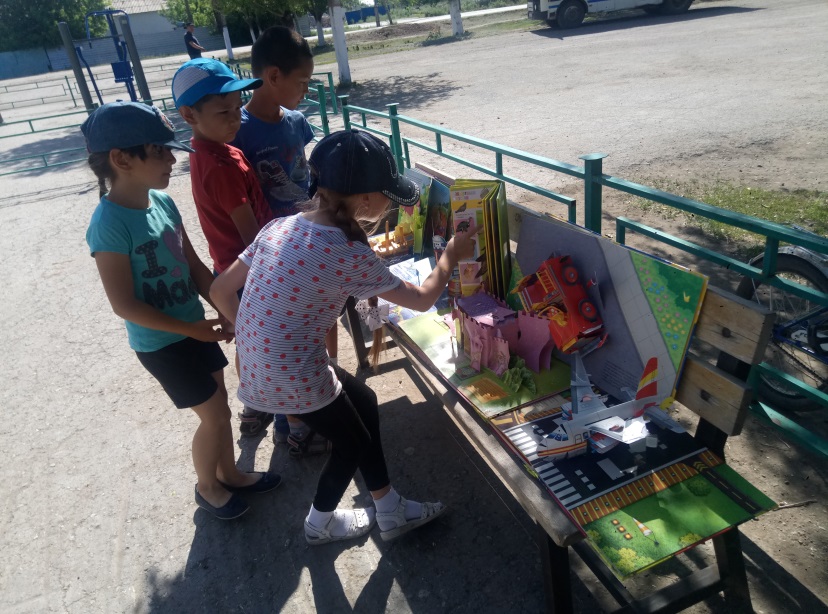 Балаларға арналған ойын-сауық алаңында болғандықтан акцияға Родина ауылының көптеген балалары ат салысты. Көрмеде балаларға арналған көптеген фейерверг кітаптары, қызықты ертегілер , балалар бөліміндегі ең қызықты деген кітаптары қойылды. Акцияға келген балалар өздері ұнатқан кітапты алып ашық алаңда отырып оқыды. Сонымен қатар, осы ойын аланыңда оқыған кітаптары жайында зияткерлік сайыстар өткізіліп, лотериялық сұрақтарға жауап берілді. Акция арқасында балалар бөлімінің оқырмандар саны екі есеге көбейе түсті. Кітапханада осындай іс –шаралар жаз бойы түрлі тақырыпта өз жалғасын таппақ.