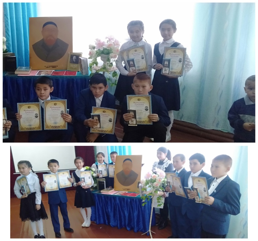 Абай өлеңдерің жатқа айтыудан Нұржанова Нұрсая, Абайдың әндерінең Коныс Адай, Абайға арнаған жүрек жарды өлеңдерінең Қасымбек Сабина    жеңіп алды. Барлық қатысқандар грамотамен марапатталды.