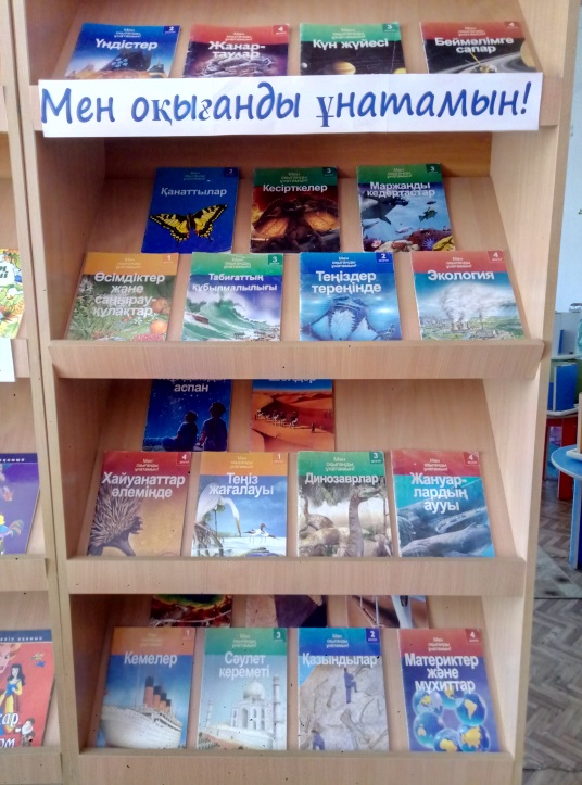 3бөлім: «Мен оқығанды ұнатамын» бөлімі онда балалардың жас ерекшеліктерін және қызығушылықтарын ескере отырып әзірленген 5-9 жас аралығындағы балаларға арналаған «жануарлар», «жер ғаламшарлары», «ғылым және өнертабыстар», «тарих» жайындағы кітаптар оқырман балалар назарына ұсынылды. Ұлтымыздың ұлы ұстазы Ахмет Байтұрсынұлының мына бір өлеңінде: