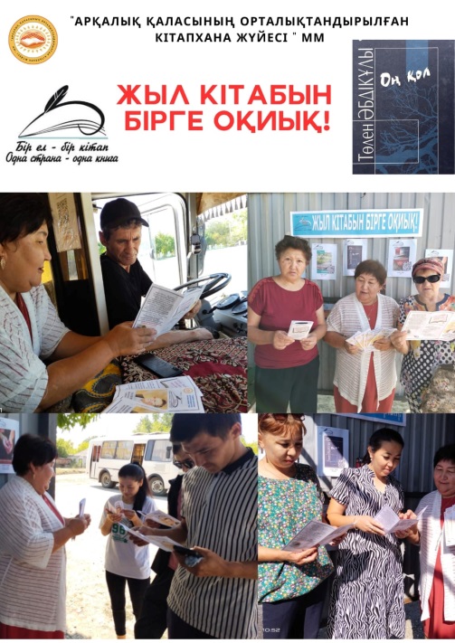 "Арқалық қаласының орталықтандырылған кітапхана жүйесі" ММ абонемент бөлімі "Бір ел - бір кітап" акциясы аясында ашық аспан астында " Жыл кітабын бірге оқиық!" атты әдеби аялдама шарасын өткізіп, оқырмандарға брошюра, бүктемелер таратылды. Айтулы шараның мақсаты биылғы жыл таңдауы Төлен Әбдіковтің шығармаларын насихаттау.