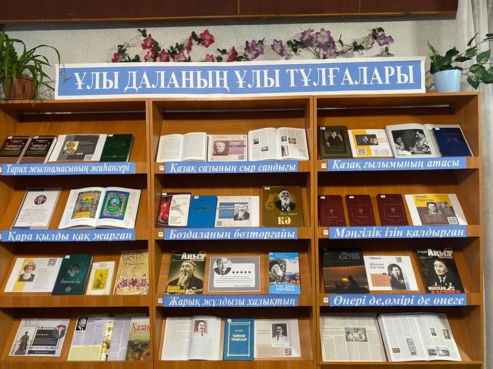 Осы орайда Арқалық қаласының орталықтандырылған кітапхана жүйесінің оқу залы бөлімінде биылғы жылғы мерей той иелеріне арнап «Ұлы даланың ұлы тұлғалары» деген атаумен жылдық тұрақты көрме жасақталып, 40 тан аса кітаптар қойылып,оқырман назарына ұсынылды. Нақтырақ айтып тоқталатын болсақ олар Қазақ Ислам дәуірінің жарқын өкілі, «Тарих-и- Рашиди» еңбегінің авторы, тарихшы-философ Мұхаммед Хайдар Дулатидің 525жылдығы. Қара қылды хақ жарып сөйлейтін, шешен сөздің шебері, әйгілі «Жеті жарғы» заңын құрастырушылардың бірі кіші жүзден шыққан Әйтеке бидің 380 жылдығы. Қазақ ән өнерінің жанашыры, этнограф, композитор, қазақ даласын кезіп жүріп алғаш болып қазақ әндерін жинақтап, нотаға түсірген, «Қазақтың 1000 әні» еңбегінің авторы Александр Виктрович Затаевичтің 155жылдығы. Күміс көмей әнші һәм жырау шешен қазақ ән өнерін аспандатқан, ән айта жүріп халқының ыстық ықыласына бөленіп «Боздаланың бозторғай» деген атқа ие болған Кенен Әзірбаевтің 140 жылдығы. Қазақтың көрнекті саяси және қоғам қайраткері, алаш қозғалысының негізін салушылардың бірі, тарихшы ғалым,қазақтан шыққан тұңғыш темір жол инженері халқының жарық жұлдызы Мұхамеджан Тынышбайұлының 145жылдығы. Қазақ ғылымының атасына айналған қазақ халқының ХХ ғасырдағы басынан өткерген барша жетістігі мен жеңісінің, қиындығы мен қасіретің куәгері, күрделі кезеңнің бел ортасында жүрген қаһарманы Қаныш Сәтбаевтың 125 жылдығы. Қазақ даласында алғашқы болып археология мектебінің негізін салушы, этнограф, әдебиет-өнертанушы Әлкей Марғұланның 120 жылдығы және қазақ халқының әйгілі суретшісі, кескіндемеші Әбілхан Қастеевтің 120 жылдық мерей тойларына арналады.