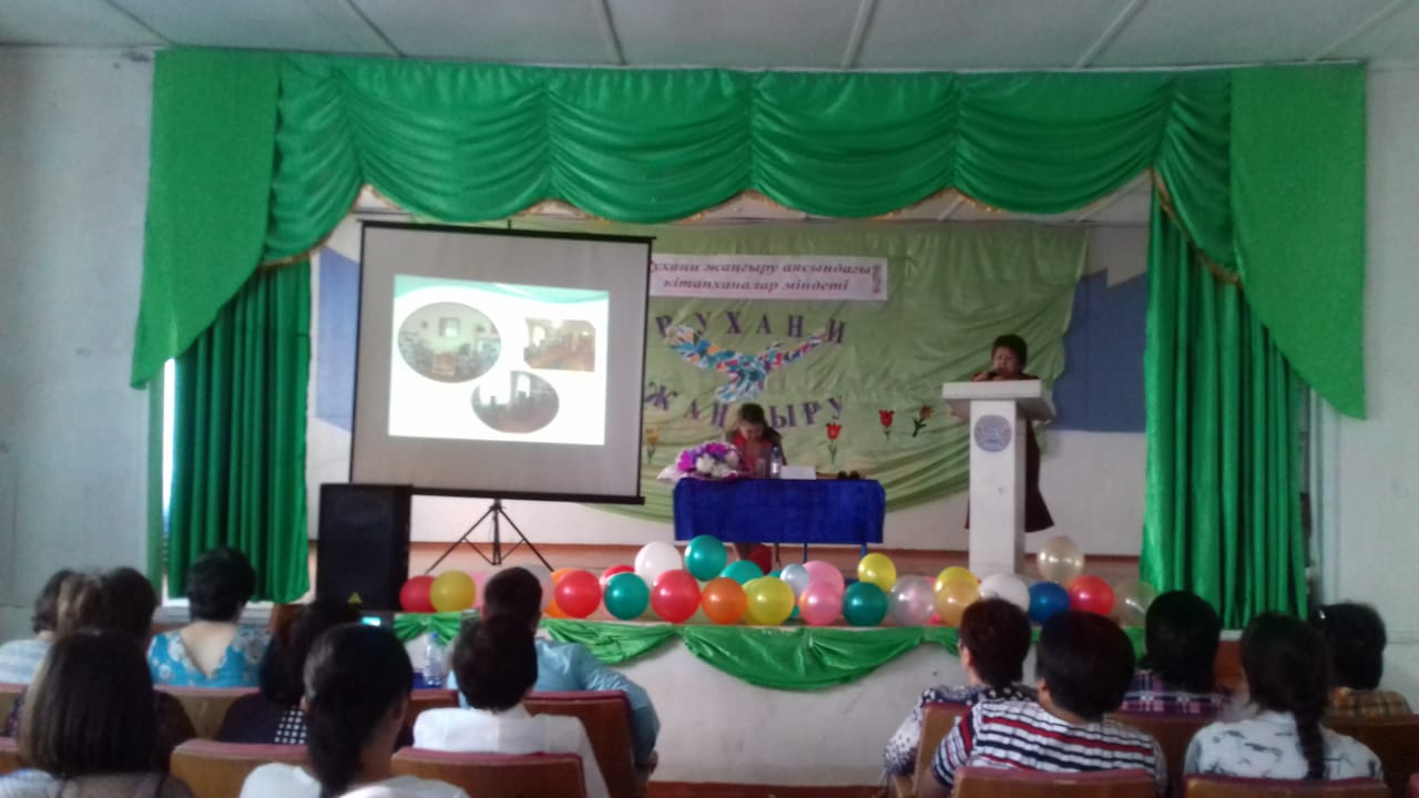На тему «Кітапхана – рухани жаңғыру ошағы» директор библиотеки Д. Құсайын подготовила доклад, о работе библиотекарей по программе «Рухани жаңғыру», доклад сопровождался видео – слайдом. Огромный интерес участников семинара вызвала презентация библио - путеводитель «Қостанай обылысы Торғай аймағы киелі жерлерінің ақпаратты», которую представила библиограф С. Садуакасова, с целью пропаганды исторических мест области и региона. Библиограф постарался отразить сведения о каждом объекте и предоставить список литературы, имеющийся в фондах Библиотечной системы города Аркалыка.